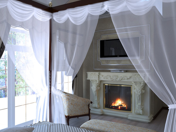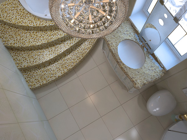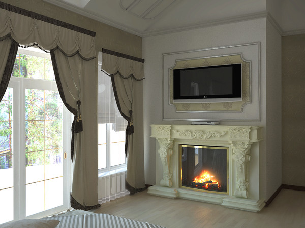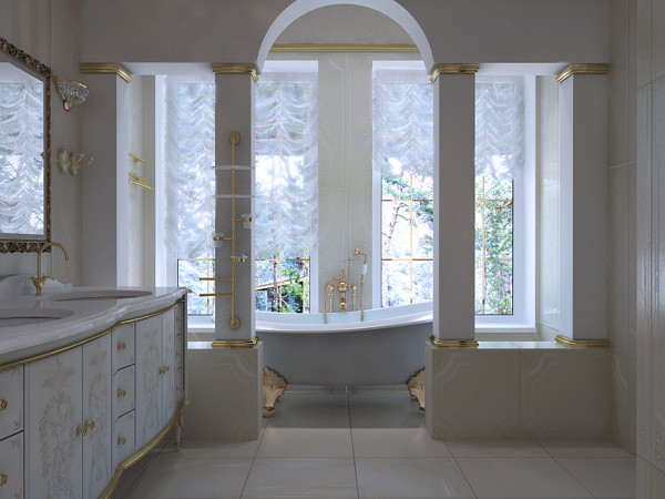 Идеи для интерьера загородного дома подсказаны самой планировкой дома и вкусами  заказчиков .Необычная планировка совмещенной гостиной с кухней и холлом, позволили дизайнерам сделать необычно интересный дизайн в стиле неоклассицизма -помещение выглядит как единый ансамбль,дополнением служат потолки и декоративный балкон.Все остальные комнаты выполнены в той же стилистике.Хамам в восточном стиле и бассейн с панорамой и декоративными колонами с светильниками, служат  заключительными аккордами этой архитектурной симфонии.