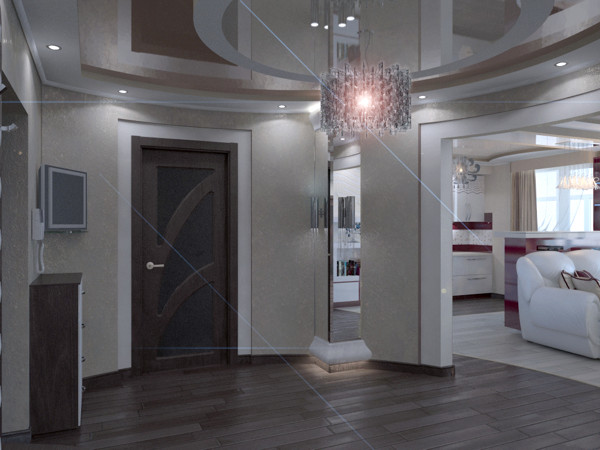 Современный дизайн квартиры в светлых жизнерадостных тонах для молодой семьи с ребенком.Интерьер зала и столовой объединены в единое пространство.Дизайн спальни в бело-бежевых тонах способствует релаксации и отдыху,просторная гардеробная комната с подсветкой дополняет ее.
