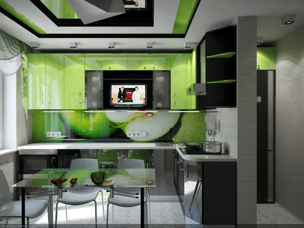 Характерной чертой данного проекта есть то,что не взирая на то,что квартира четырехкомнатная,заказчики не предполагали делать перепланировку,поэтому комнаты все остались небольшого метража,поэтому дизайн выглядит слегка перенасыщенным предметами интерьера. Несмотря на малые габариты кухни дизайнер удачно расставил мебель и нашел интересное цветовое решение.