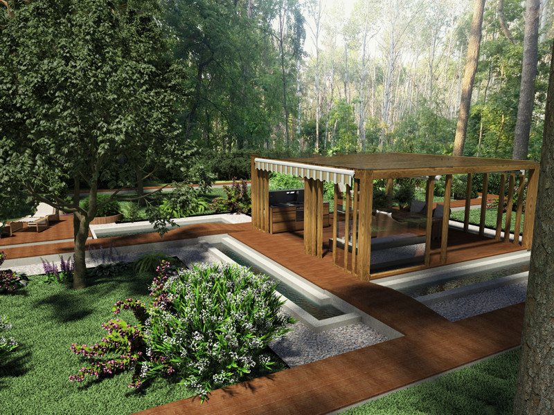 Планировка участка и ландшафтный дизайн являются логическим продолжением экстерьера и интерьера дома, где неотъемлемой частью являются барбекю и беседка для отдыха. Выполненные в различных стилях, они отражают индивидуальные пожелания каждого владельца участка.