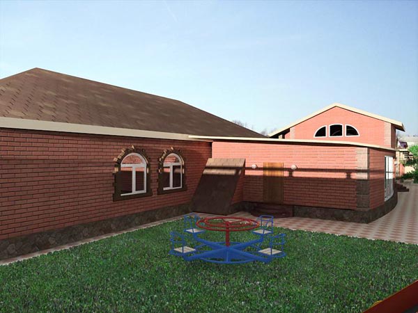 Идеи вашего дома для каждого заказчика носят индивидуальный характер.Задача,поставленная перед дизайнером была сформулирована следующим образом-дом должен быть одноэтажным,Включать в себуягостиную,кухню,две спальни,детскую,винный погреб,сауну и летнюю кухню с барбекю.